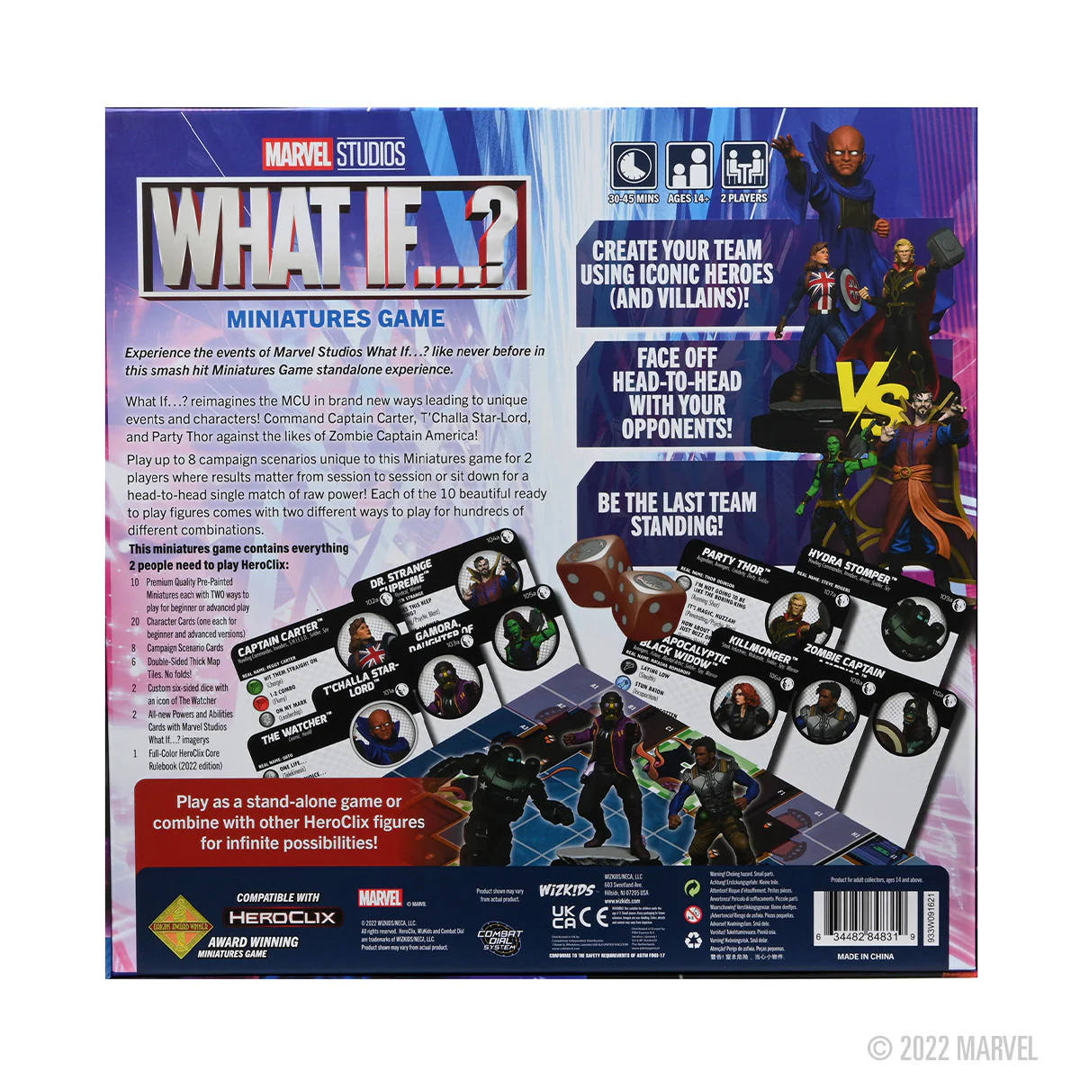 Experience the events of Marvel Studios What If…? like never before in this smash hit Miniatures Game standalone experience. What If…? reimagines the MCU in brand new ways leading to unique events and characters! Command Captain Carter, T’Challa Star-Lord, and Party Thor against the likes of Zombie Captain America!