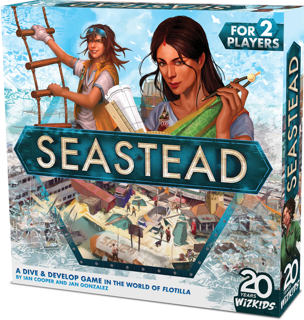 Return to the world of Flotilla in Seastead, an all-new 2-player resource collection and building game!