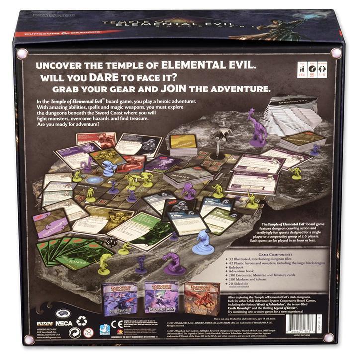 Following in the path of the other critically-acclaimed D&D board games, Temple of Elemental Evil features multiple scenarios, challenging quests and cooperative game play designed for 1-5 players. The contents can also be combined with the other D&D Adventure System Cooperative Play board games to create an even more exciting experience.